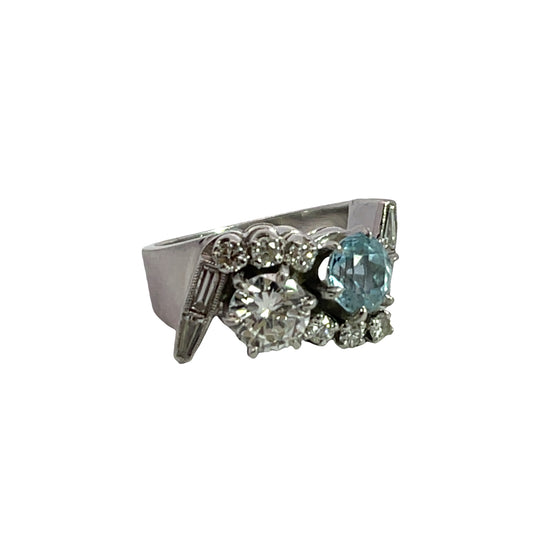 Victorian Platinum, 18KY gold, green sapphire and old mine cut diamond ring