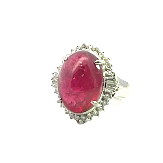 Art Deco Platinum, Rubellite and Diamond Coctail Ring