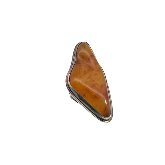 Native American Dine Modernist, Free-Form Amber and Sterling Silver Ring by Jane Yikaazba Popovitch