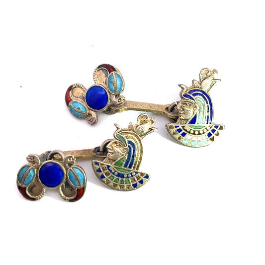 Victorian Egyptian Revival Sterling Silver and enamel cufflinks