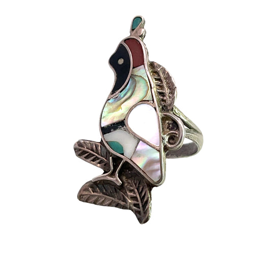 Native American Sterling silver, mother of pearl, turquoise, coral and onyx ring