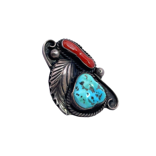 Native American Sterling silver Ring with turquoise and coral Size 7.25