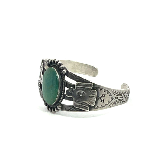 Native American Fred Harvey Era Turquoise & Sterling Silver Cuff with 2 Thunderbirds