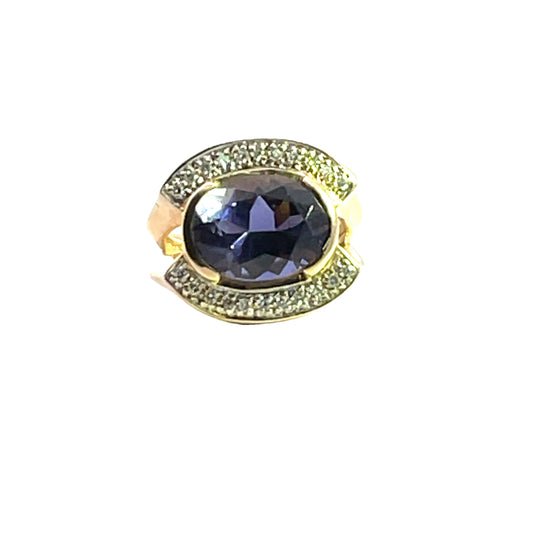 Modern 14KY gold Zircon and Diamond Ring (3DR127)