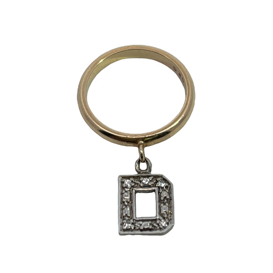 Modern 14KY sterling silver and white diamond 'Letter' ring