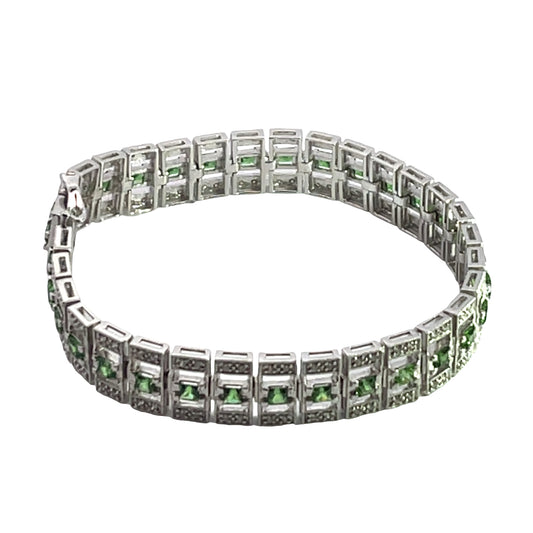 Modern 18K white tsavorite and diamond articulated link bracelet
