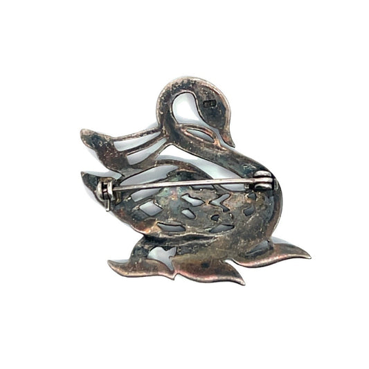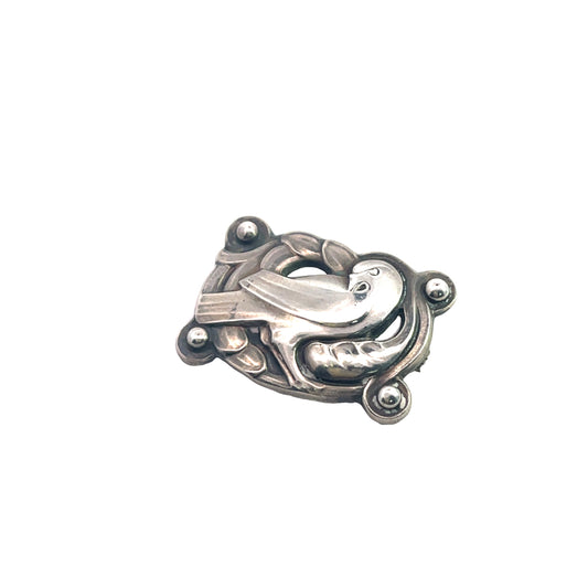 Victorian Sterling Silver Brooch with red glass eyes and marcasite