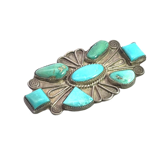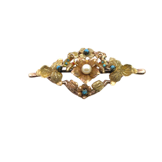 Victorian 14KY gold, turquoise and round cultured pearl brooch
