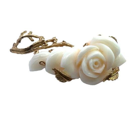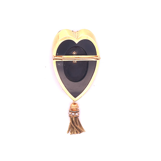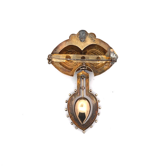 Victorian Carved onyx and coral brooch with cultured pearl tassel