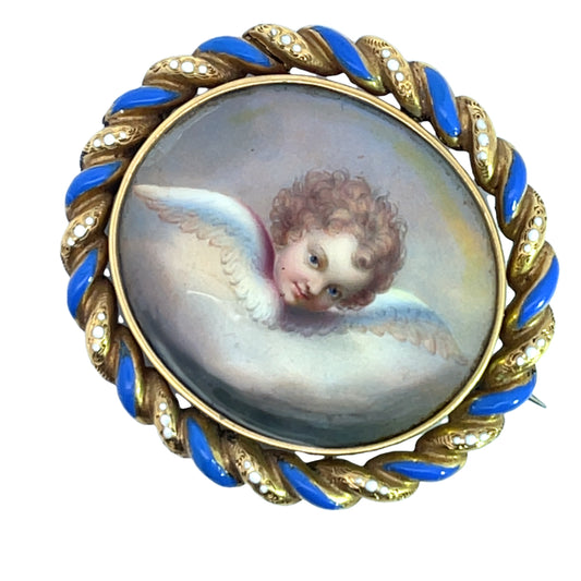 Victorian 18KY gold and hand painted enamel brooch/pendant