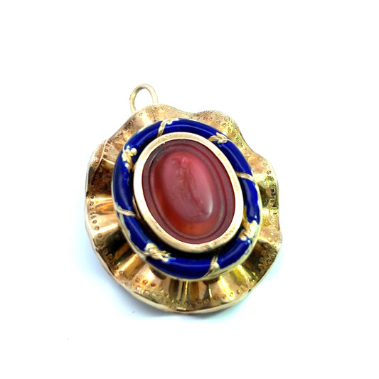 Victorian 14KY gold, enamel, glass, hair locket brooch and convertible pendant