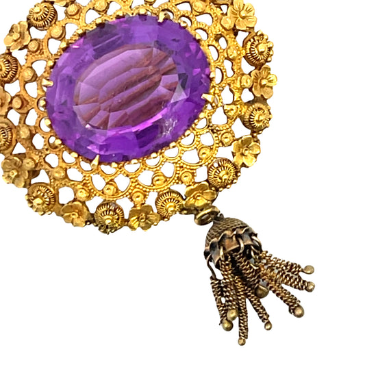 Victorian 18KY gold and Amethyst Brooch with tassels