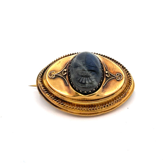 Victorian 15K yellow gold, carved Labradorite scarab Hair Pin