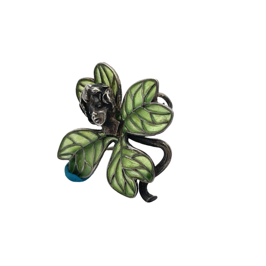 Art Noveau Plique-a-jour sterling silver shamrock brooch