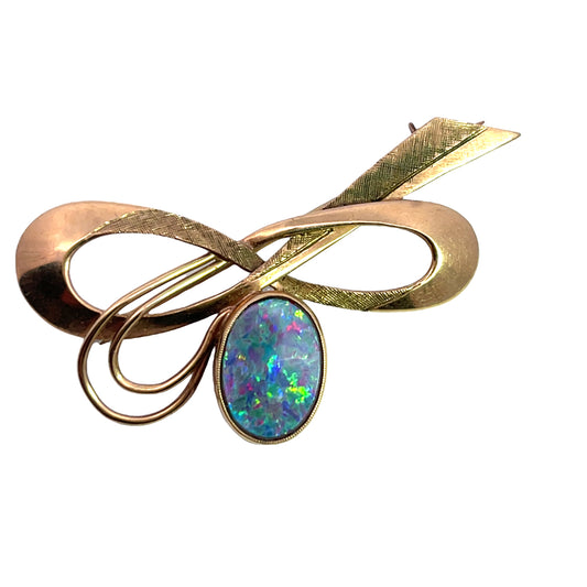 Modern 9KY gold and opal doublet bow pin