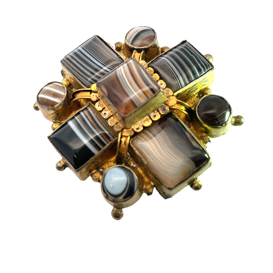 Victorian Gold over Brass banded agate brooch