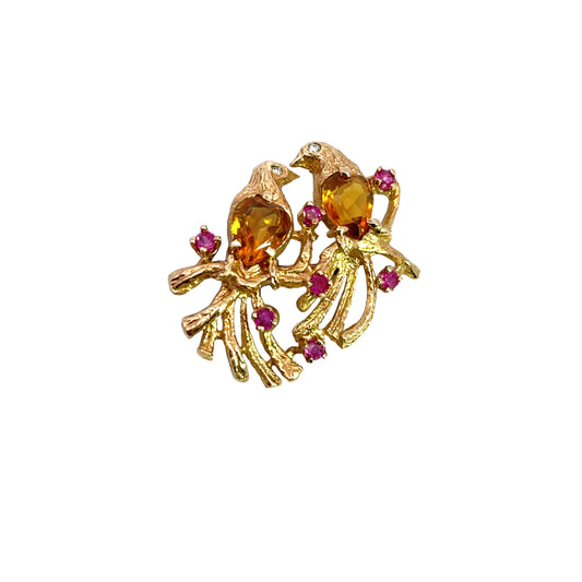 Mid Century Modern 14KY gold, citrine, diamond and ruby pin
