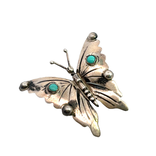 Native American Sterling silver and turquoise butterfly pin