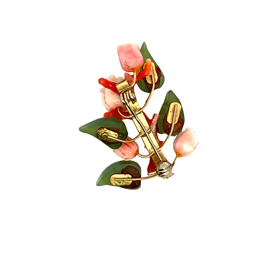 Victorian 14KY gold, coral, and nephrite jade stem brooch