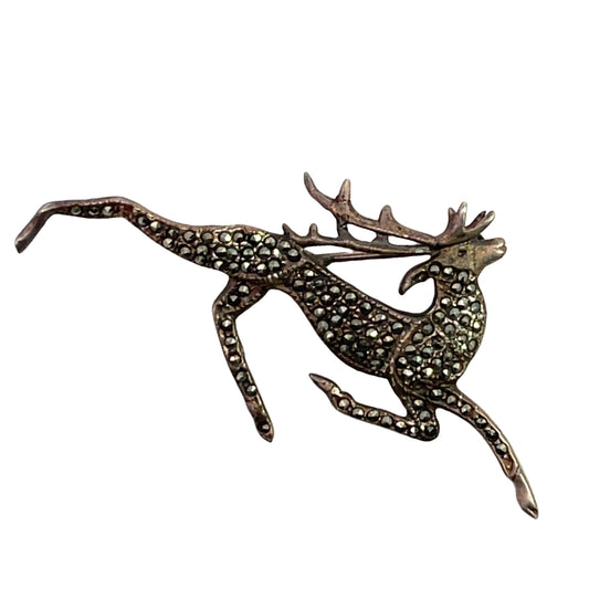 Art Deco sterling silver and marcasite reindeer brooch