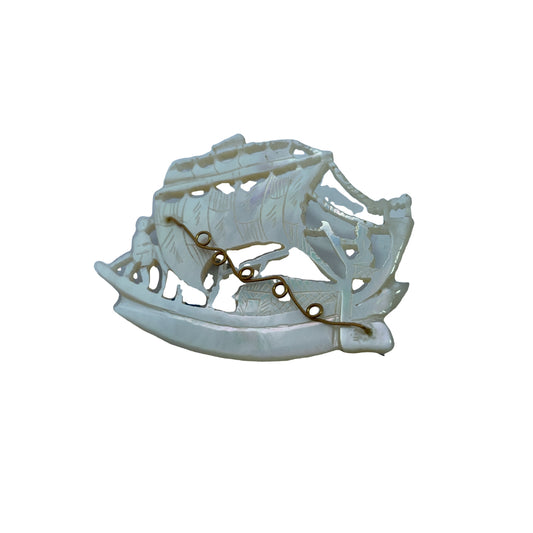 Victorian Mother of Pearl Carved Ship Brooch