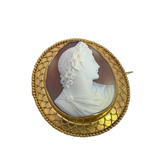 Early Victorian Gold Fill carved shell cameo brooch