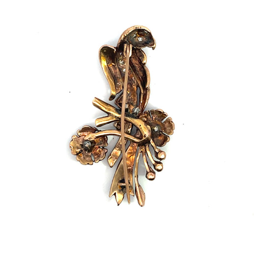 Victorian, c. 1900, 14K rose gold and diamond handmade pin from Damascus Syria