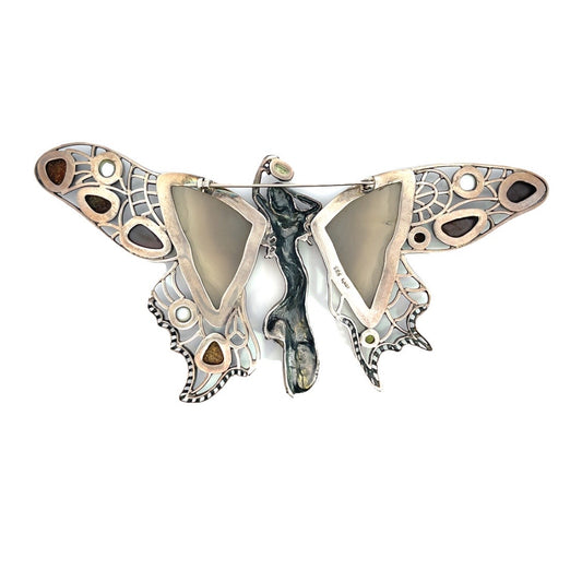 Victorian Multi stone sterling silver Butterfly Fairy brooch