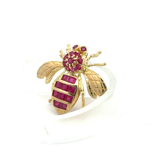 Mid Century Modern Ruby Bumble Bee Pin 14KY gold c.1950