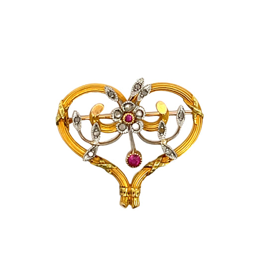 Victorian 18KY and White Gold, Ruby and Diamond French Lavalier