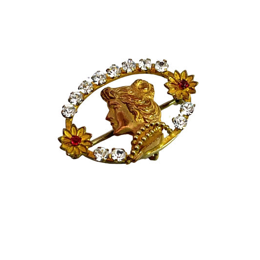 Art Noveau Brass and paste gem brooch