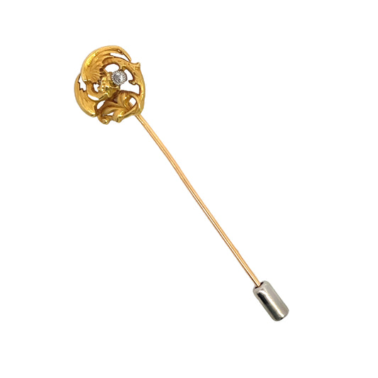Victorian French 18KY gold and mine cut diamond Lapel Pin