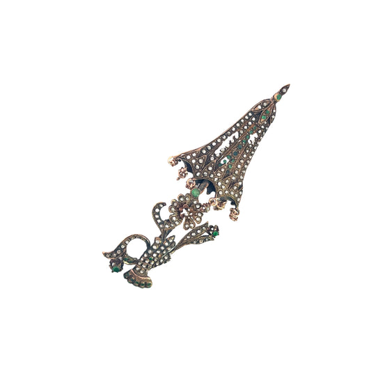 Victorian 14K rose gold, rose cut diamond and emerald Hand and Parasol brooch