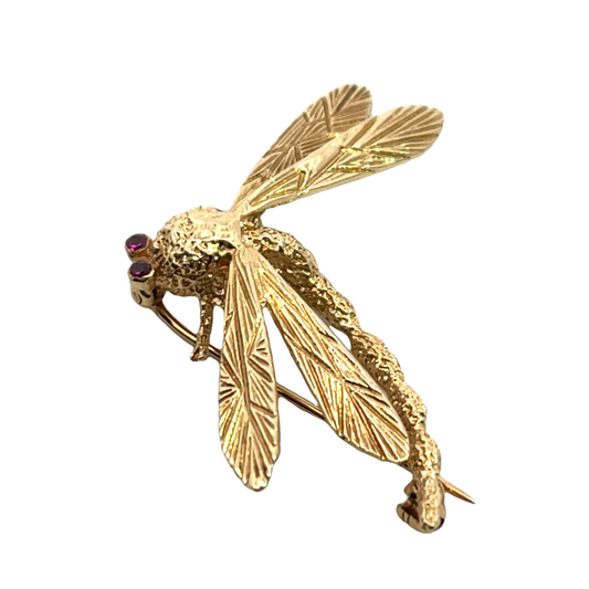 Mid-Century Modern 14KY gold and ruby brooch