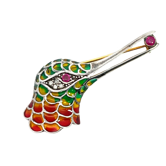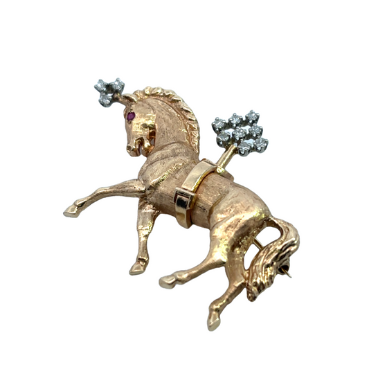 Mid-Century Modern 14KY gold, white gold, ruby and diamond horse pin