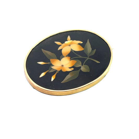 Victorian 14KY gold Pietra Dura Brooch