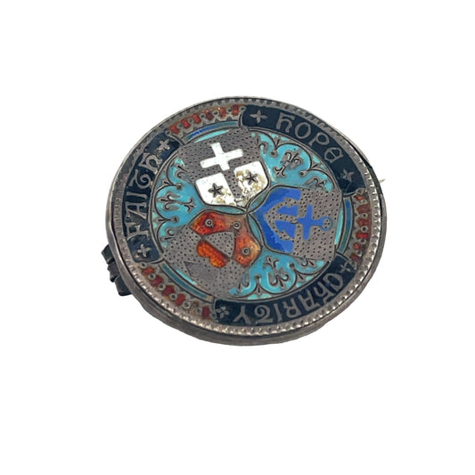 Victorian sterling silver and enamel Scottish coin brooch