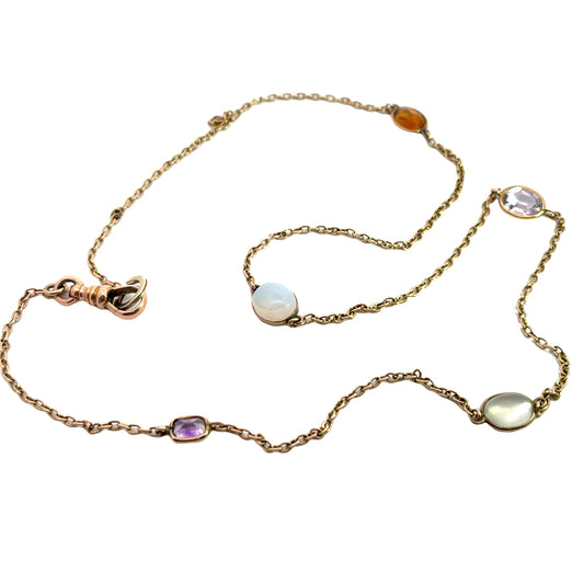 Victorian 14KY gold watch fob with citrine, moonstone, opal and amethyst chain necklaces