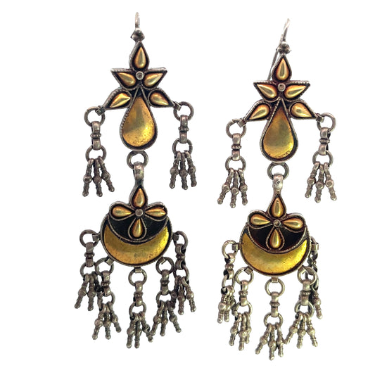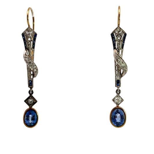Art Deco Platinum, 14KY gold diamond and sapphire drop earrings