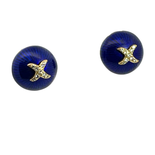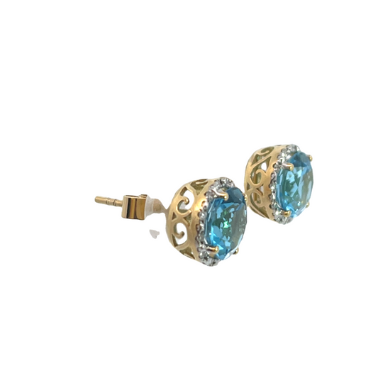 Contemporary 18KY gold and blue topaz with diamond halo post earrings
