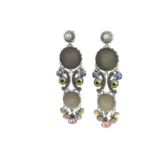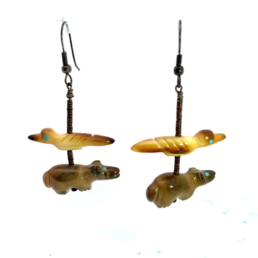 Native American Sterling Silver Fossilized bone, agate and heishi shell earrings