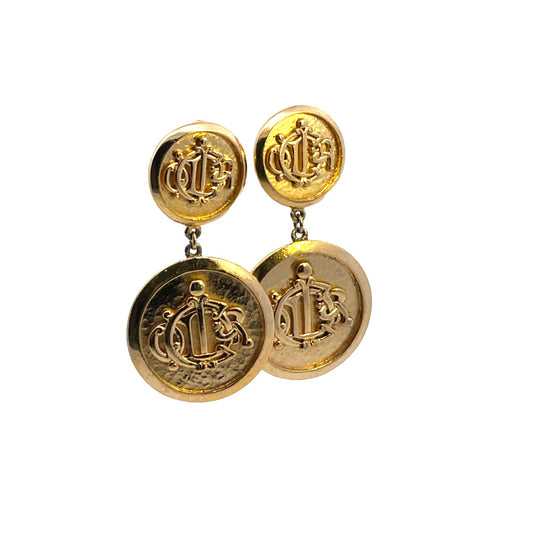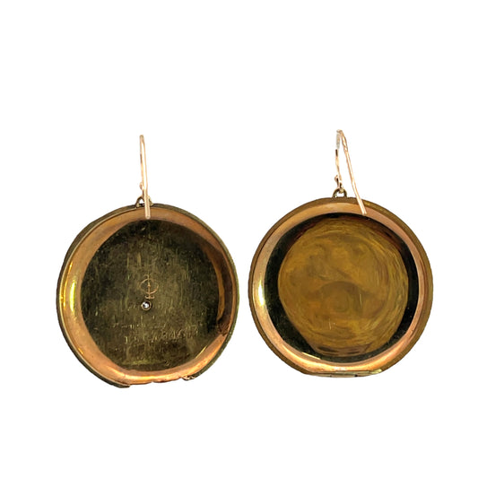 Victorian 14KY multi-gold and diamond engraved disk earrings