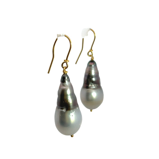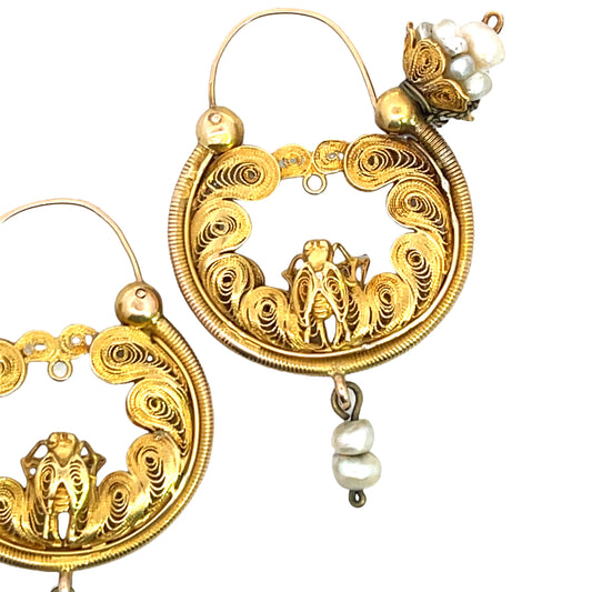 Victorian 22KY gold filigree and natural pearl hoop earrings