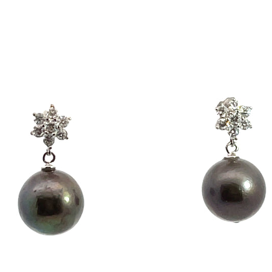 Modern Sterling Silver, 13mm pearl earrings with cubic zirconia, post earrings