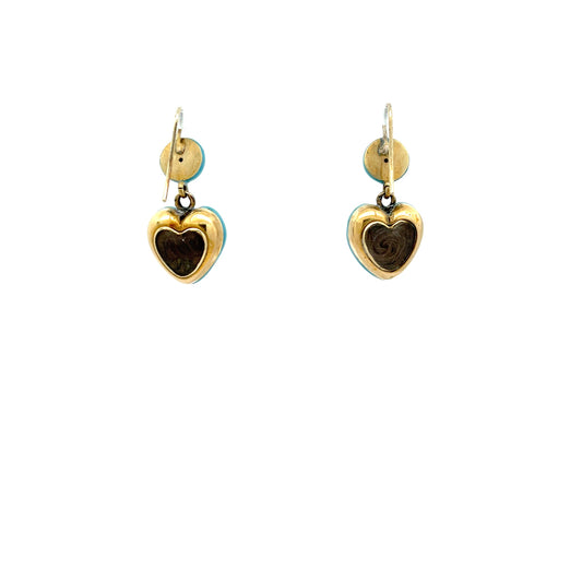 Mid-Victorian 18k and Blue Enamel Heart Earrings ca.1840-1860