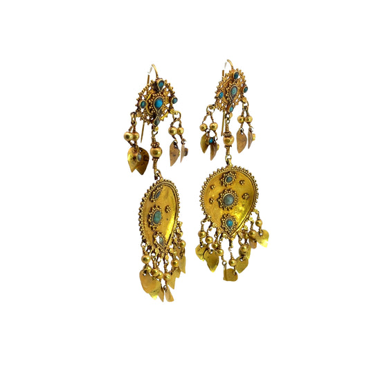 Victorian 22Karat Yellow gold and Turquoise earrings