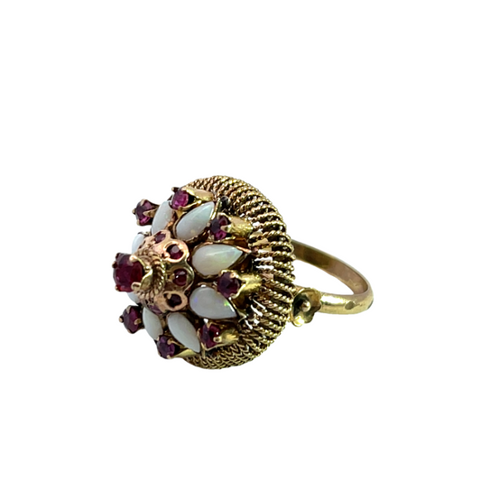 Victorian 10KY gold, opal, and ruby princess style ring