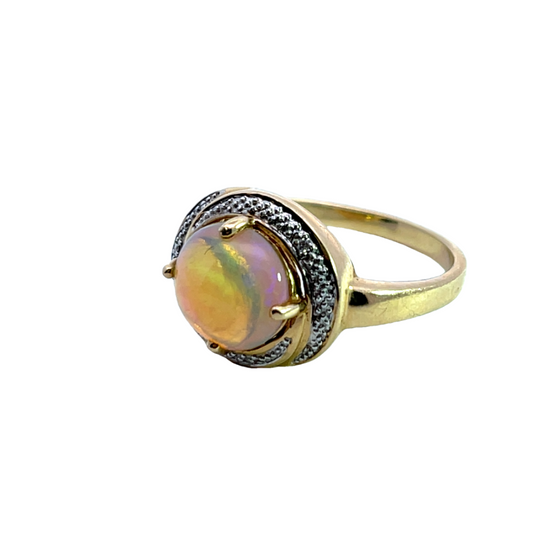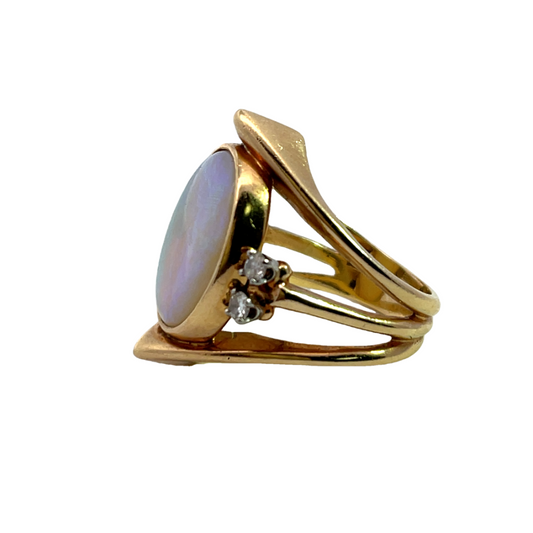 Mid Century Modern 14KY gold Australian opal and diamond ring