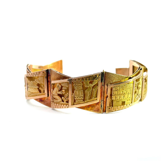 Modern 18KY gold Peruvian Story articulated link bracelet