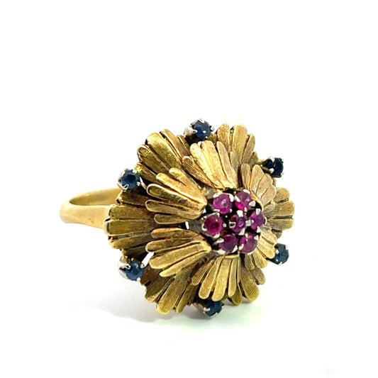 Victorian 18KY gold ruby and sapphire ring